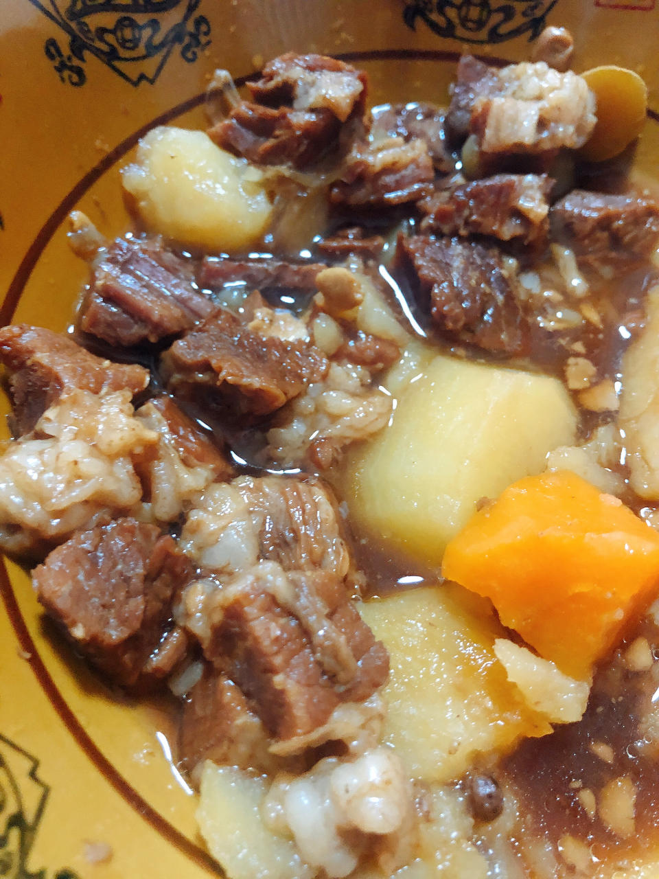 高压锅版牛肉,超级软烂。空气炸锅版烤大蒜,有点熟透了。但是韩式拌饭,一口不剩。