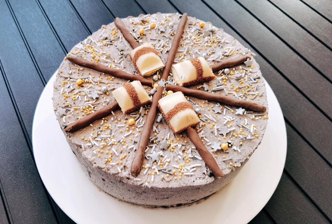 ①四蛋黄五蛋白,70果汁50油50糖;②150℃15分钟,163℃3分钟;③180g奶油,一勺可可粉,一小袋香草奥利奥碎...