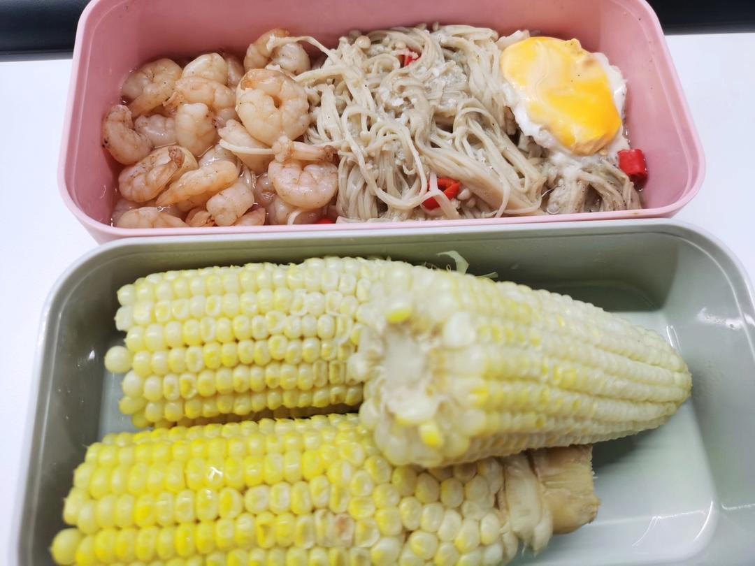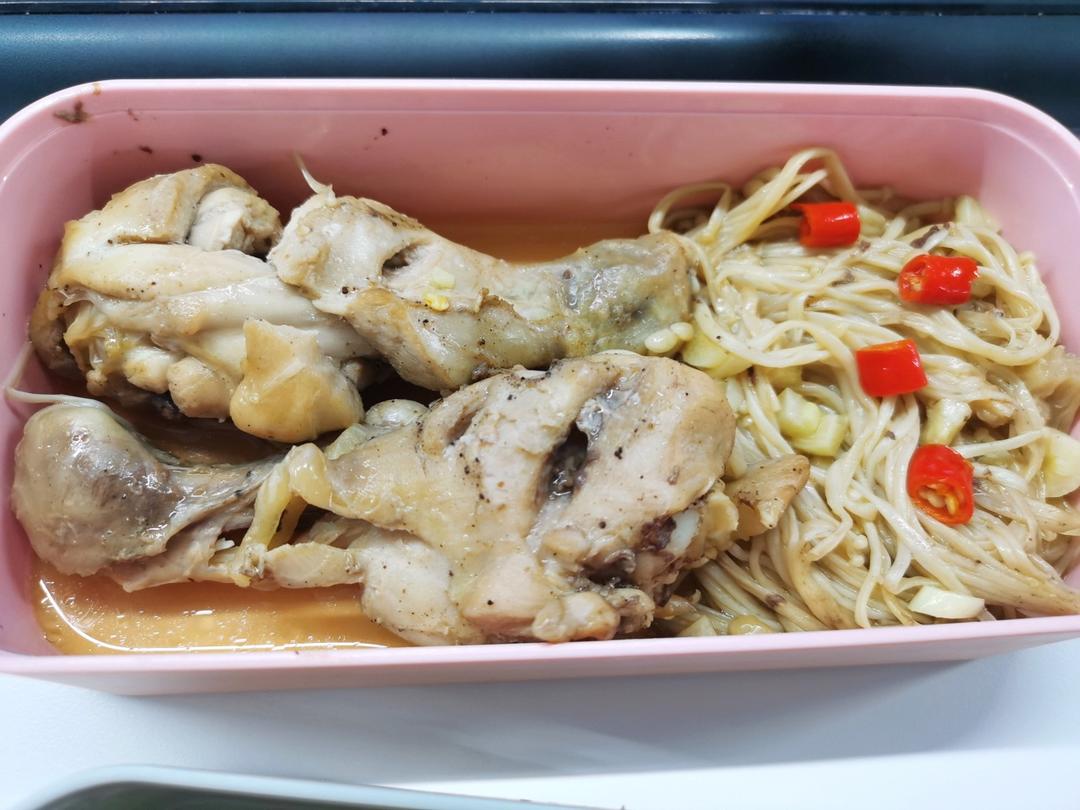 开始自己带饭了,今天的鸡腿蒸金针菇 好好吃啊!!
