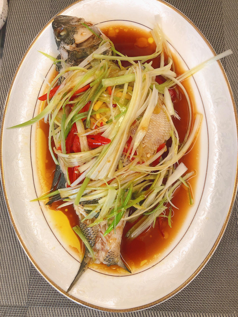 第一次做清蒸鲈鱼,大火蒸了半个小时,肉肉略微有丢丢老,整体味道还是相当不错