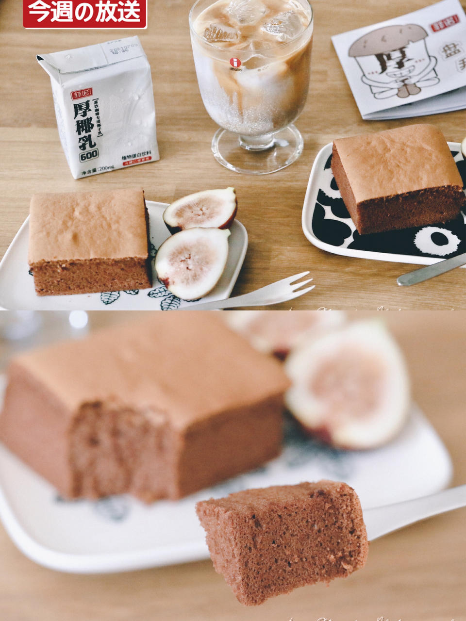 生椰拿铁+可可古早蛋糕~