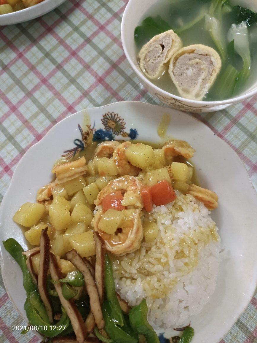 Day13,换个吃法:咖喱土豆虾+肉卷菜汤