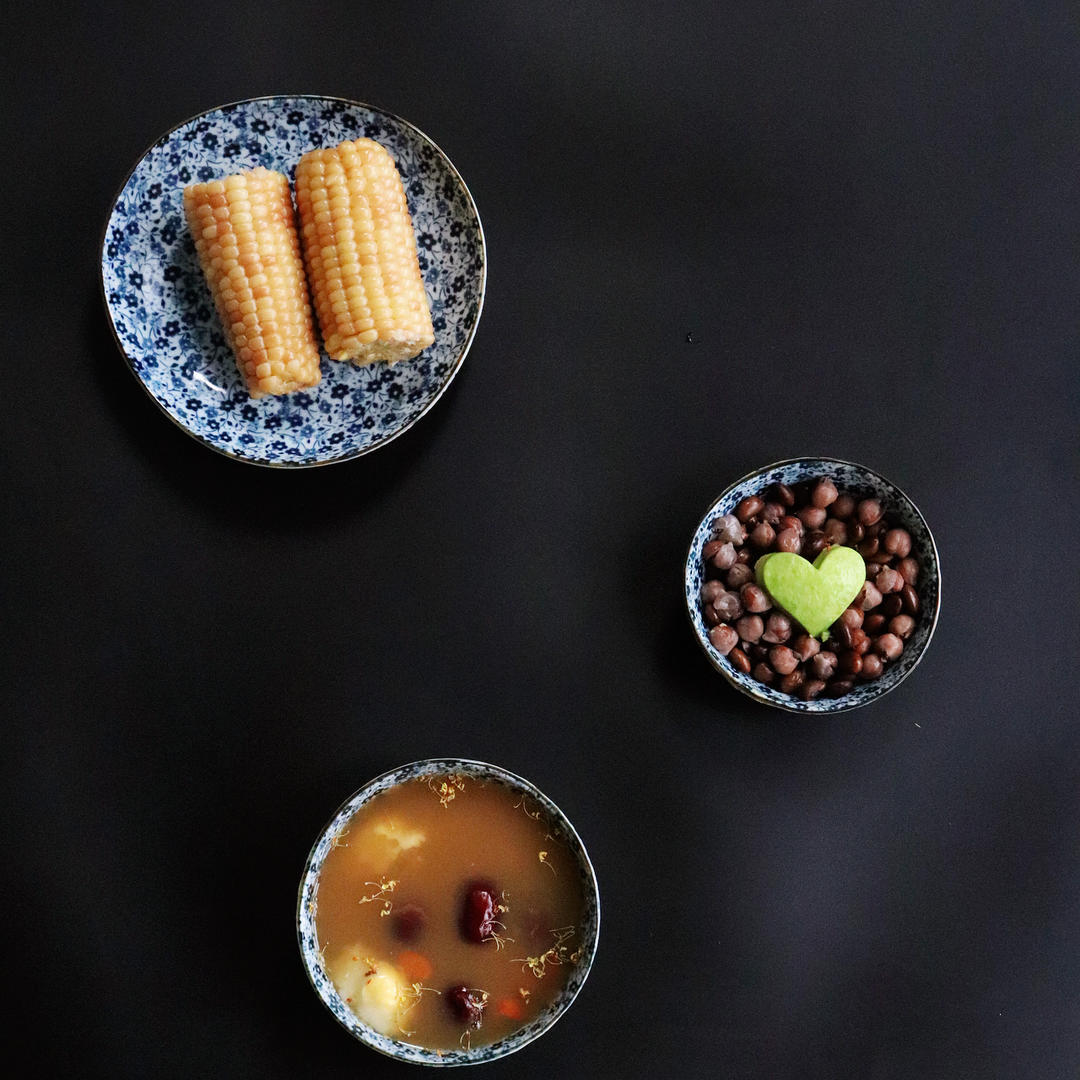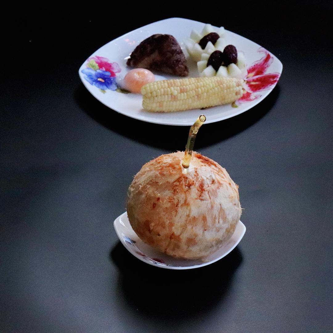 红豆蜜枣粽、蒸枣、香瓜、鸭蛋?玉米、椰汁💯