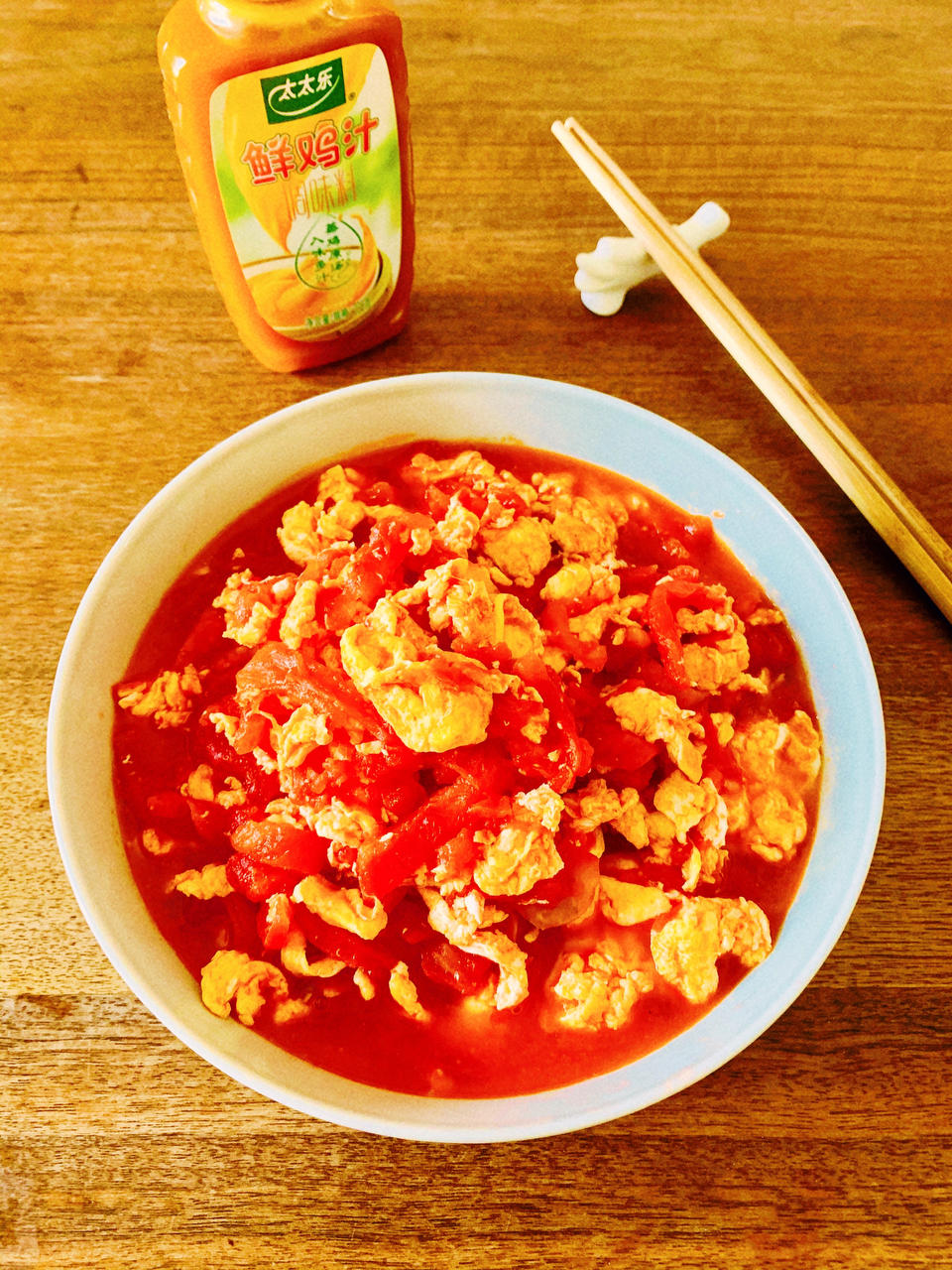 这道经典家常菜西红柿炒鸡蛋添加了“太太乐”鲜鸡汁调味...