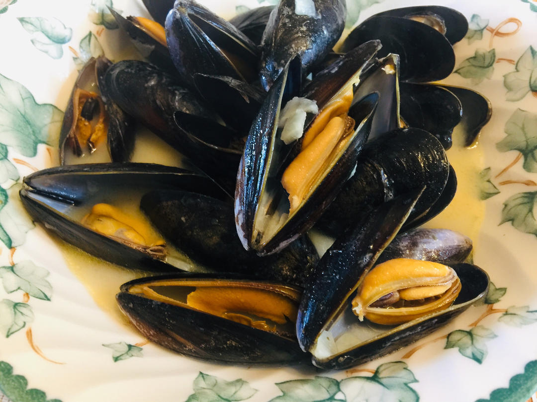 煮青口,迷迭香羊排,咖喱醬生菜。