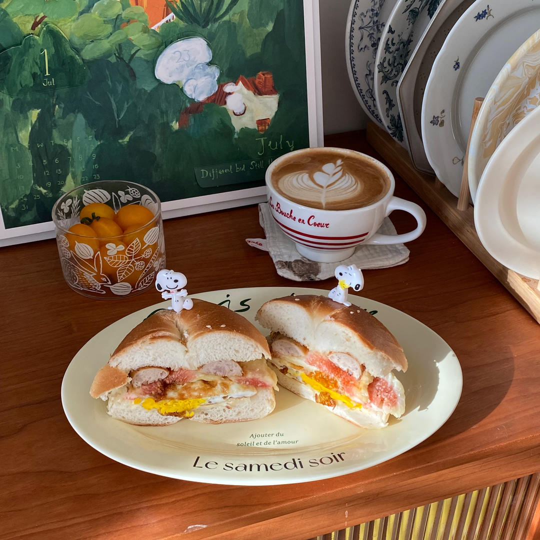 终于,又一起慢慢吃一个自己做的早餐🥪