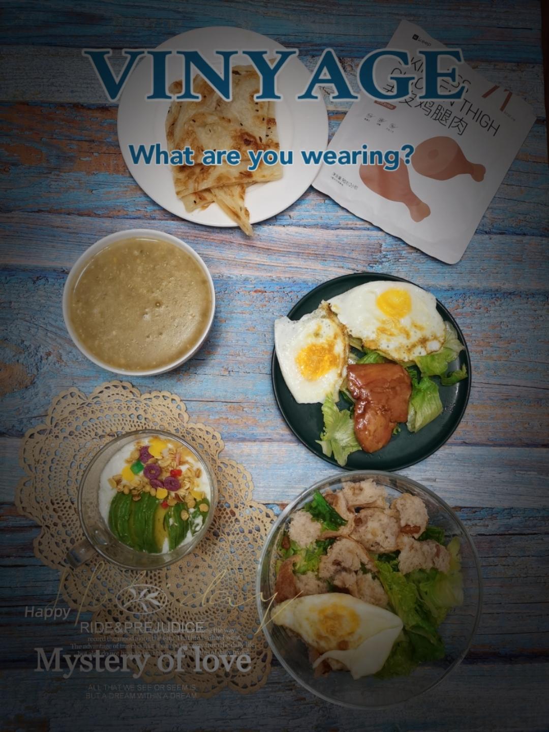 油饼+绿豆粥+面包🍔🥗🍳