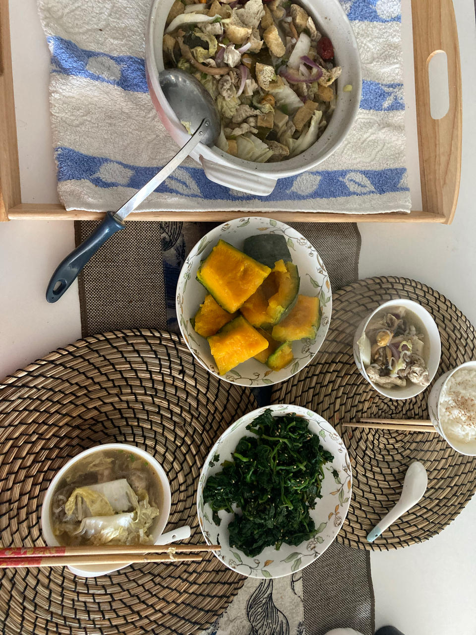 青菜鸡腿木耳腐皮…泡面…