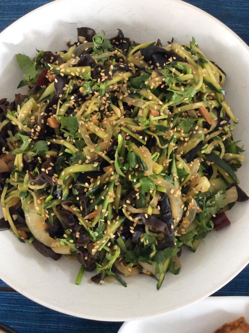 现有食材大拼盘:🥒、洋葱、黑木耳,调味料:味极鲜酱油 大勺、醋一勺、糖适当、小米椒一个、蒜...