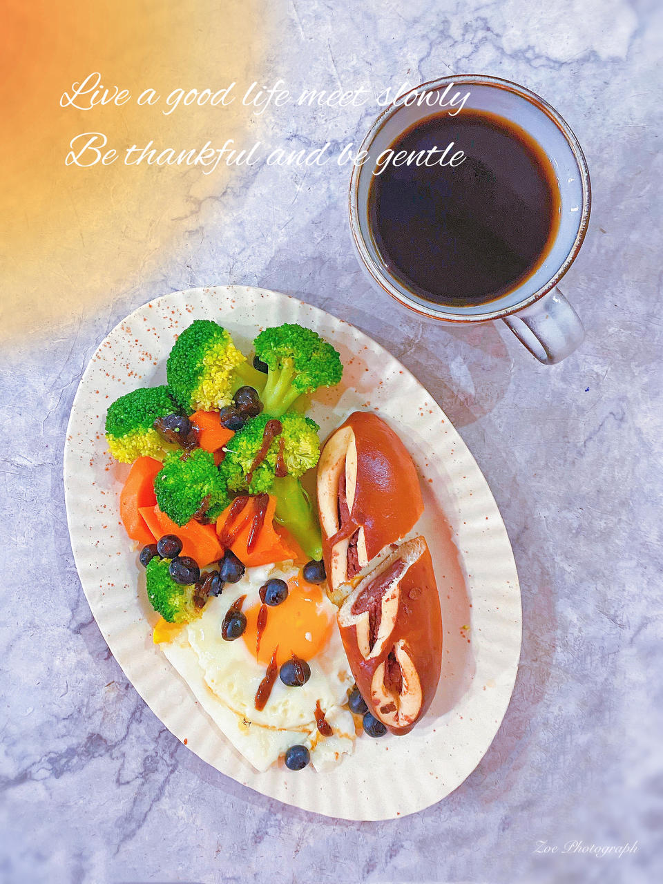 ☕冷美式+🥖红...