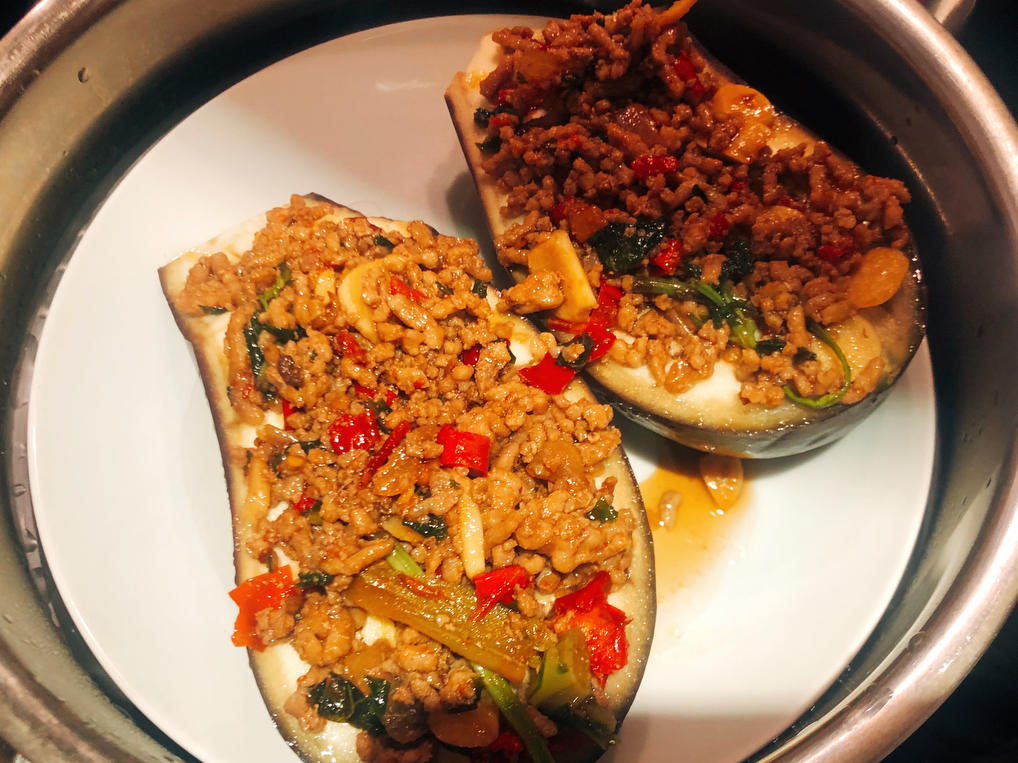今天又是想办法打发剩饭一天😆十分钟肉末蒸茄子~好次😋
