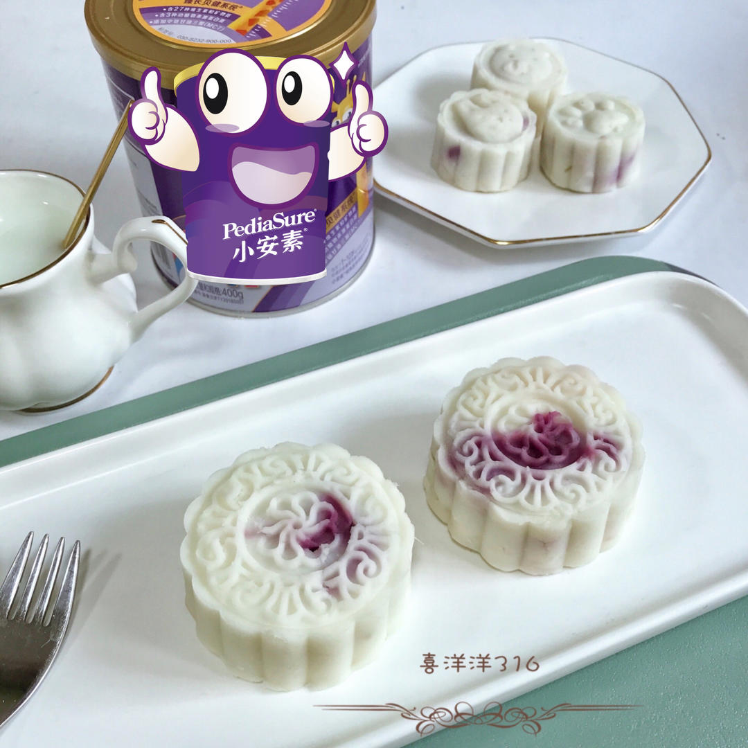 山药紫薯月饼,香甜软糯易消化,营养又健康,搭配一杯小安素奶...