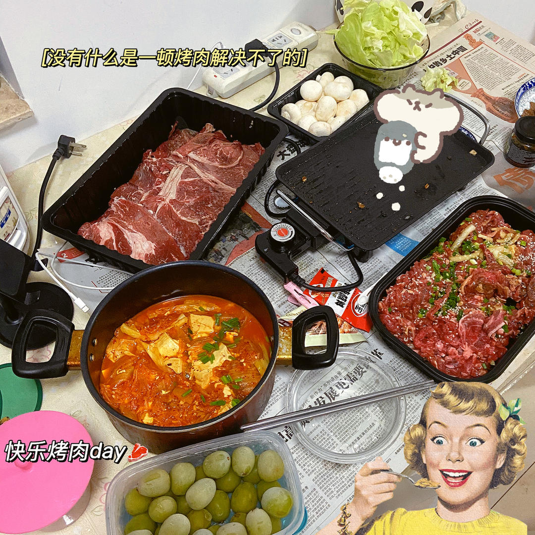 烤肉 泡菜豆腐汤 冻青提
