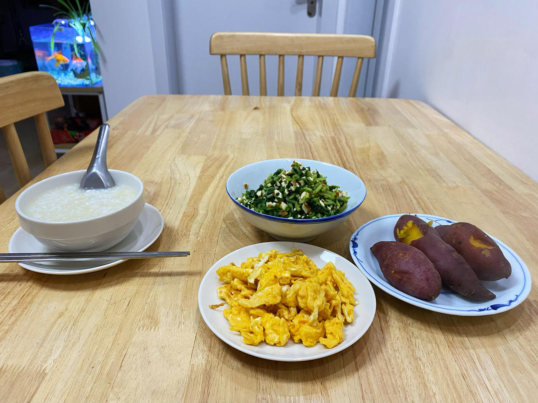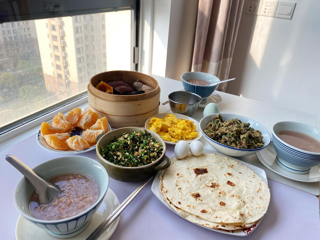 每周能有壹天一家仨定心享受早餐时光啦,马兰香干,香椿炒...
