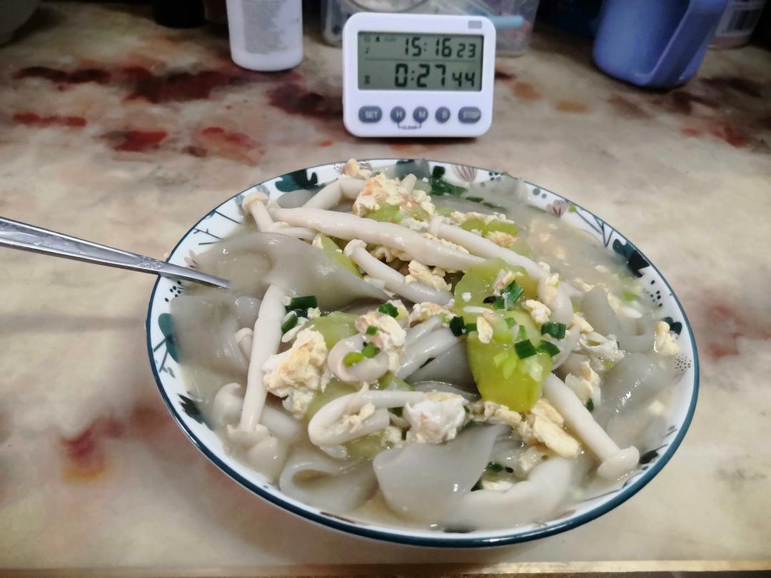 睡饱了,3点吃个海鲜菇粉,谈谈的清香