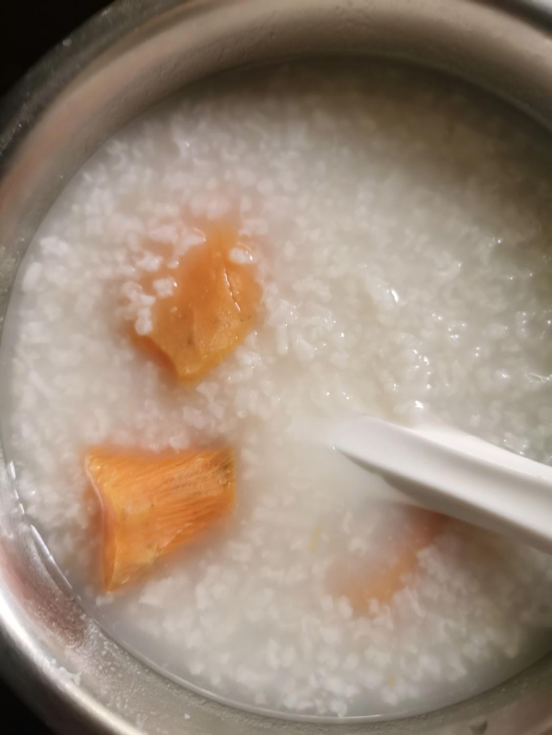 早餐:萝卜肉沫粥、蒸番薯