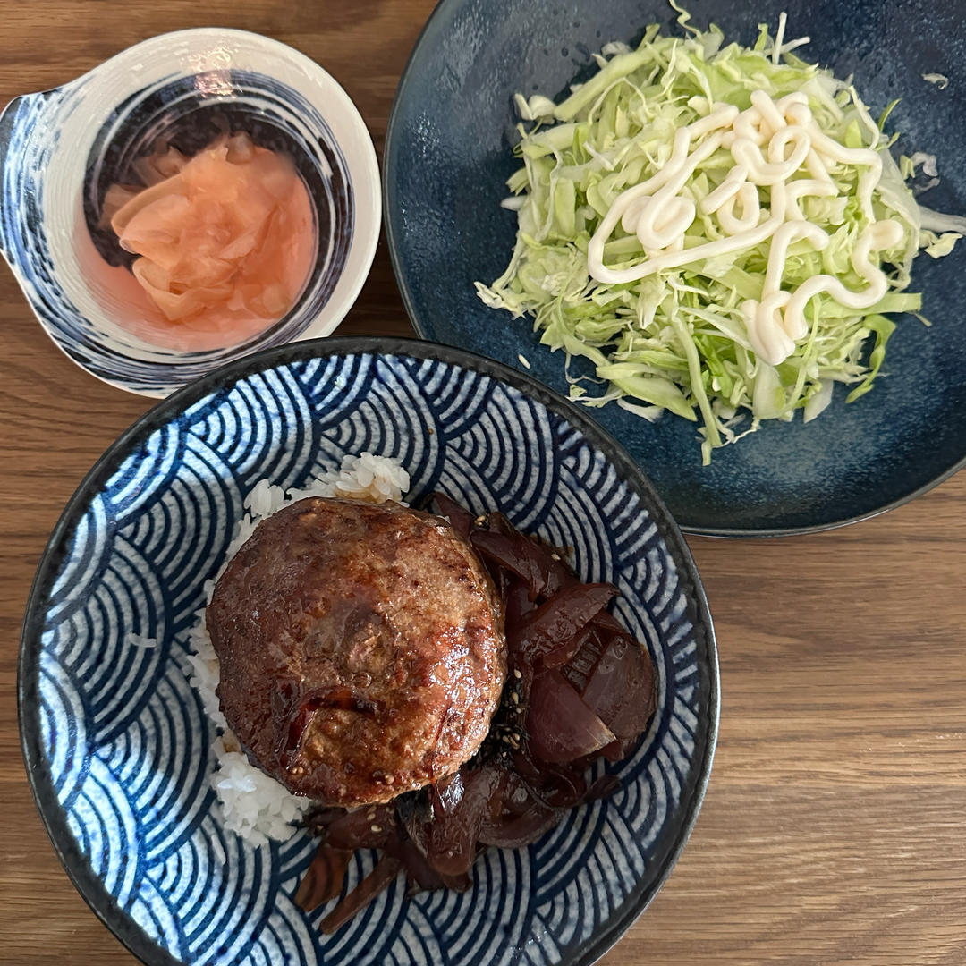 照烧牛肉饼,日式卷心菜沙拉,寿司姜