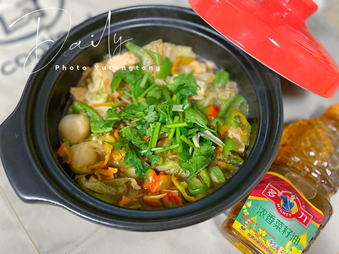 用多力菜籽油炖个白菜海鲜砂锅,色香味俱全😋