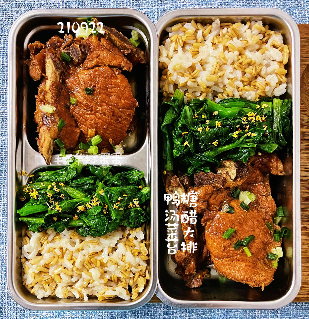 9月22日全天便当:明天是糖醋大排和鸭汤菜苔。糖醋大排用了最最懒人的做法,没上浆,直接扔锅里按1:2:3:...