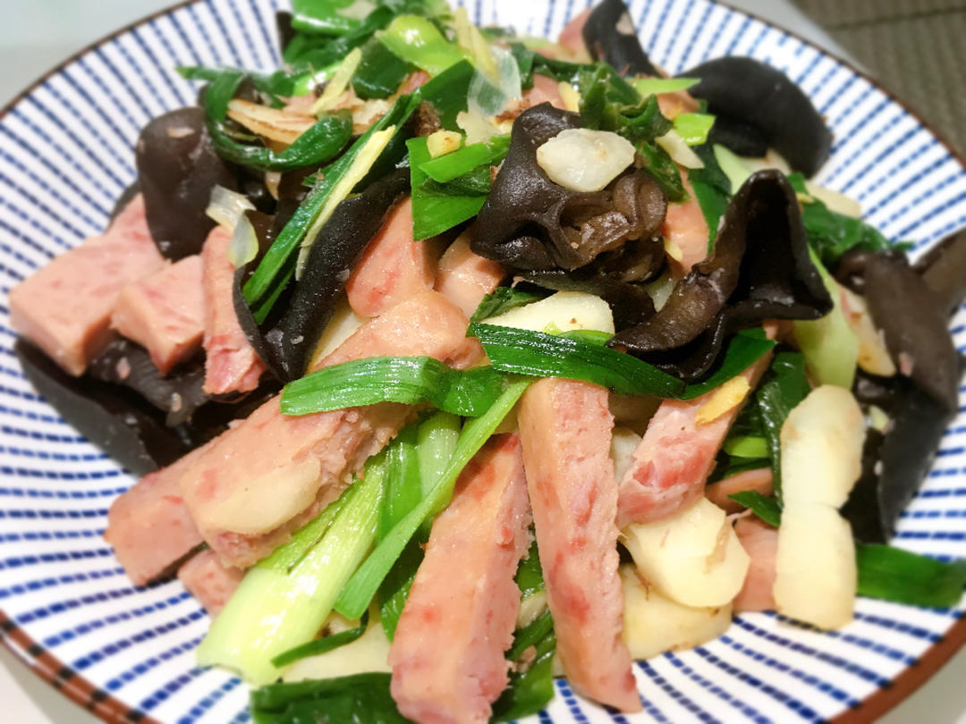 手头没有里脊肉,用午餐肉代替…但是还是炒里脊更好吃更搭啦