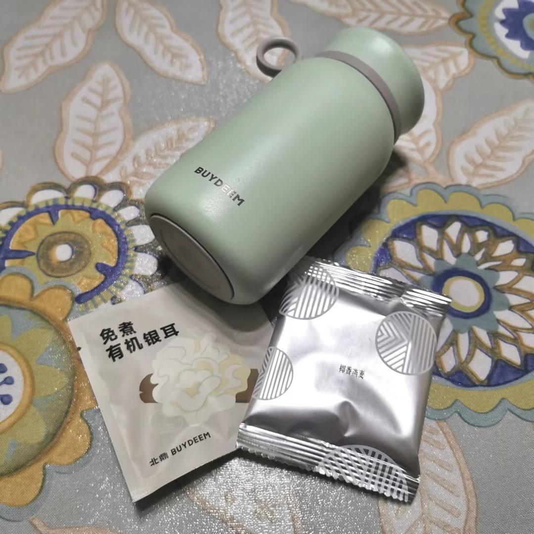 直接在保温杯里泡一袋有机银耳,配料是椰香燕麦,加240ml的开水,盖上杯盖焖两...