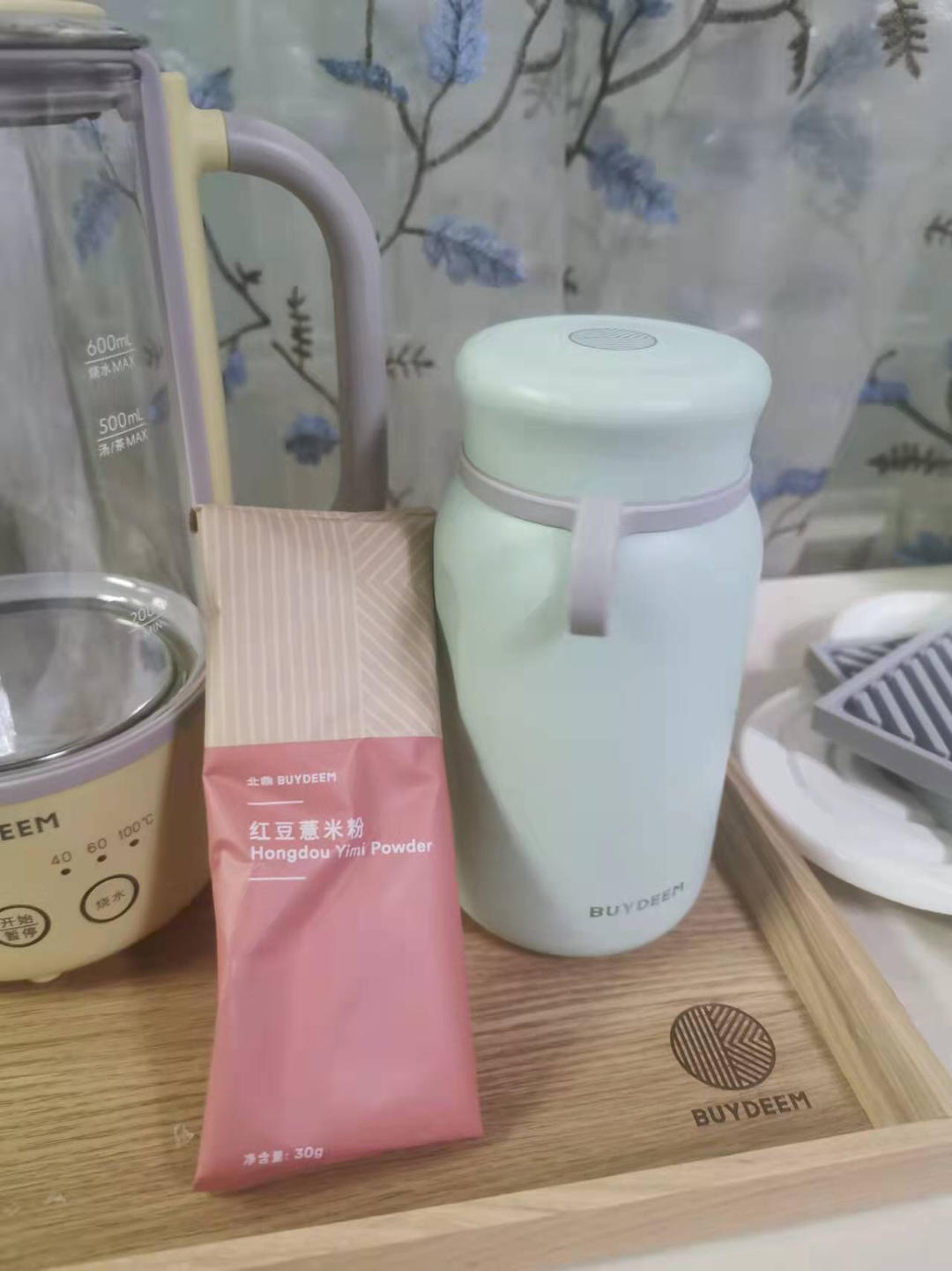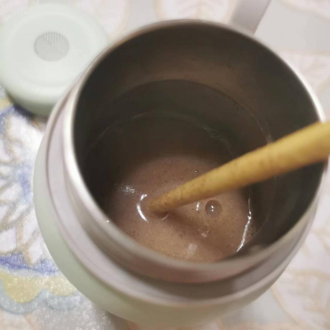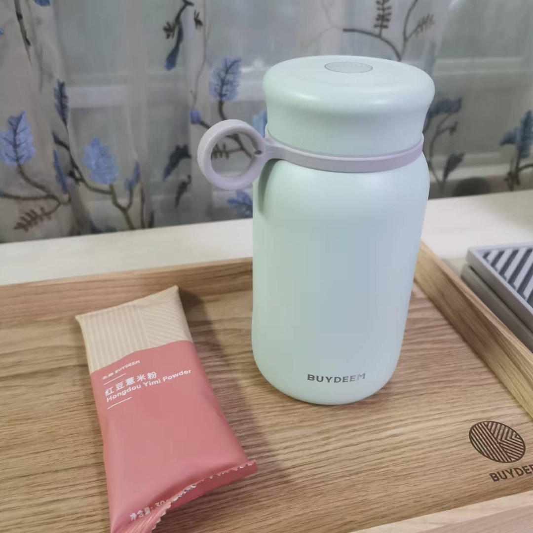 买了不少小北家的红豆薏米粉,用作代餐粉,把薏米粉倒入保温杯里后加入200ml的...