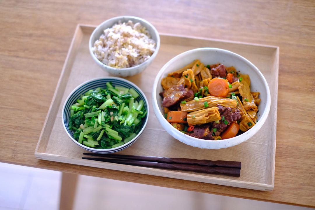 腐竹烧排骨|炒青菜|杂粮饭