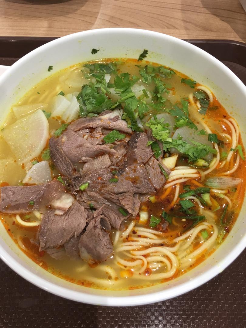 公司食堂师傅做的兰州拉面,15元一碗,牛肉也不少了,味道很赞!