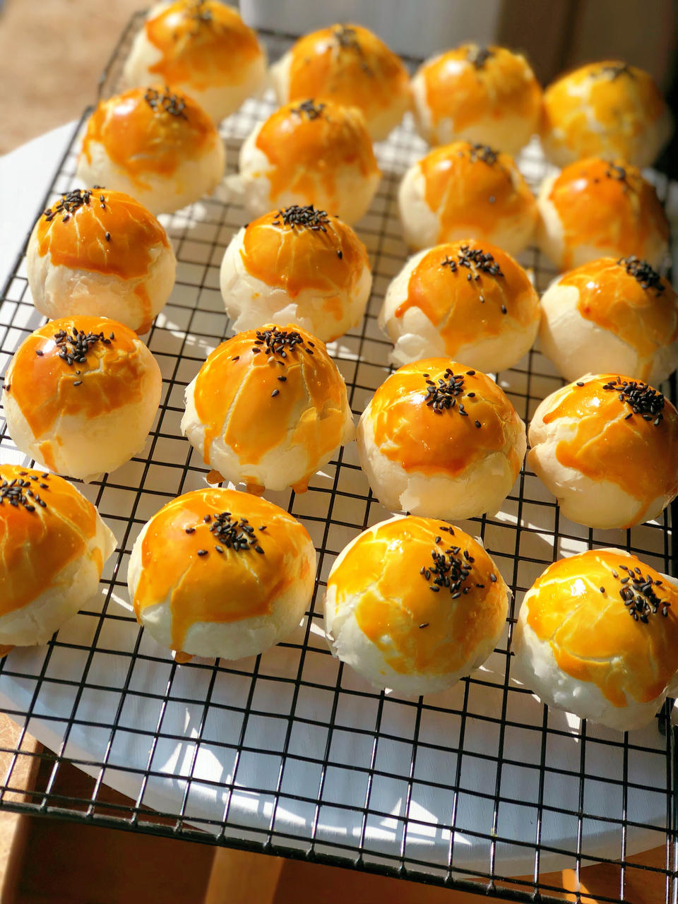 没有蛋黄的蛋黄酥,因为家里人都不爱吃蛋黄,所以放了麻薯替代,包的时候感觉都捏紧了,但是烤...