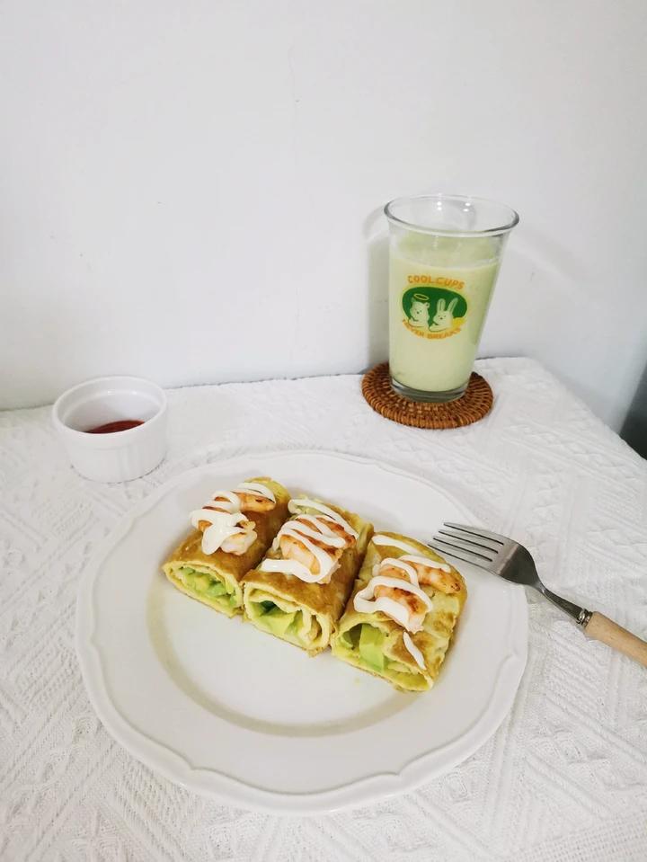 牛油果🥑鸡蛋虾仁卷+牛油果奶昔