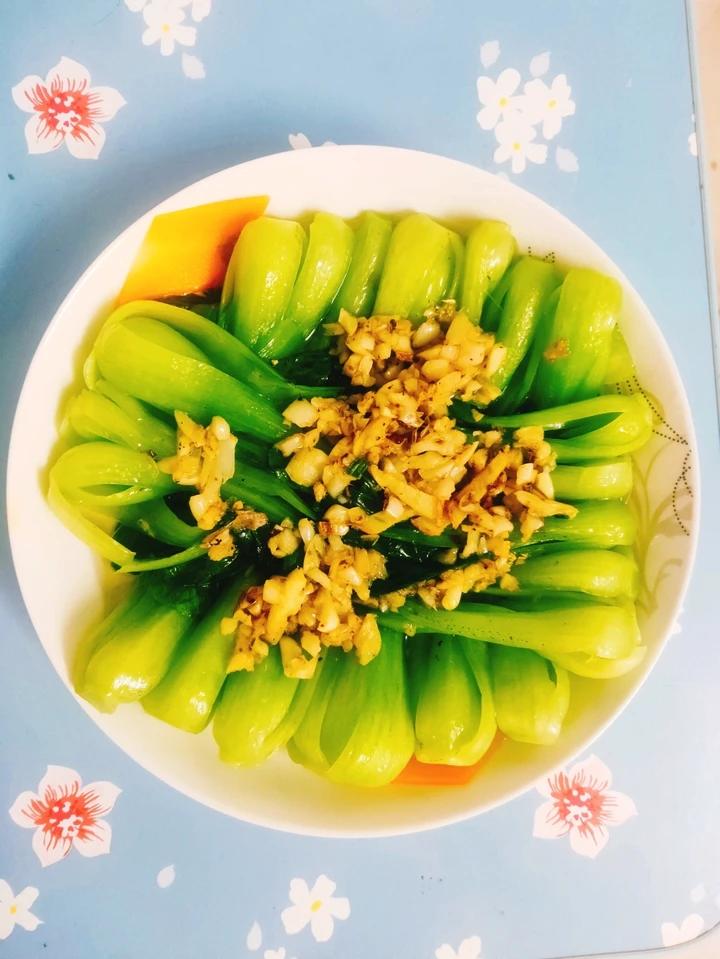蒜蓉小白菜、五花肉蒸土豆、水煮豆腐~