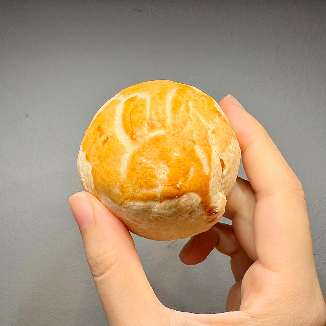 提前一周错峰做的橙皮拿铁乳酪法式月饼,冷冻囤货,唯一一只画了兔子的必...
