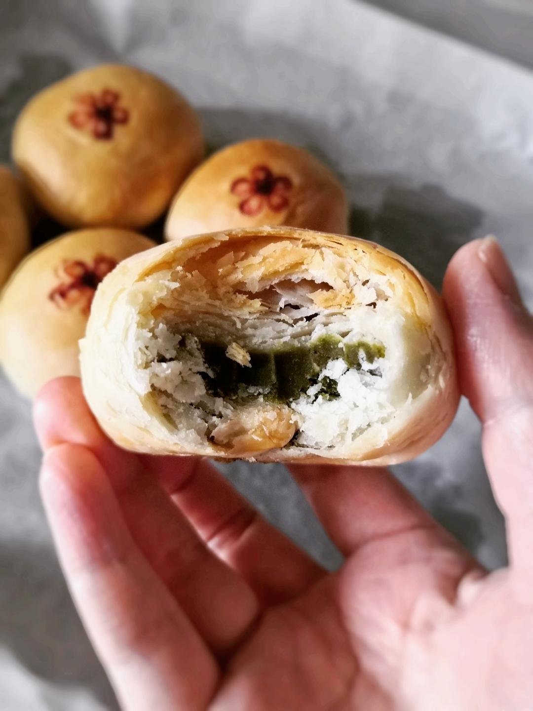 做了抹茶馅儿的,以前都是用黄油,第一次用猪油做真酥啊!