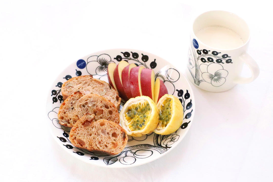 D1190 早餐:无花果硬欧+百香果+苹果+牛奶