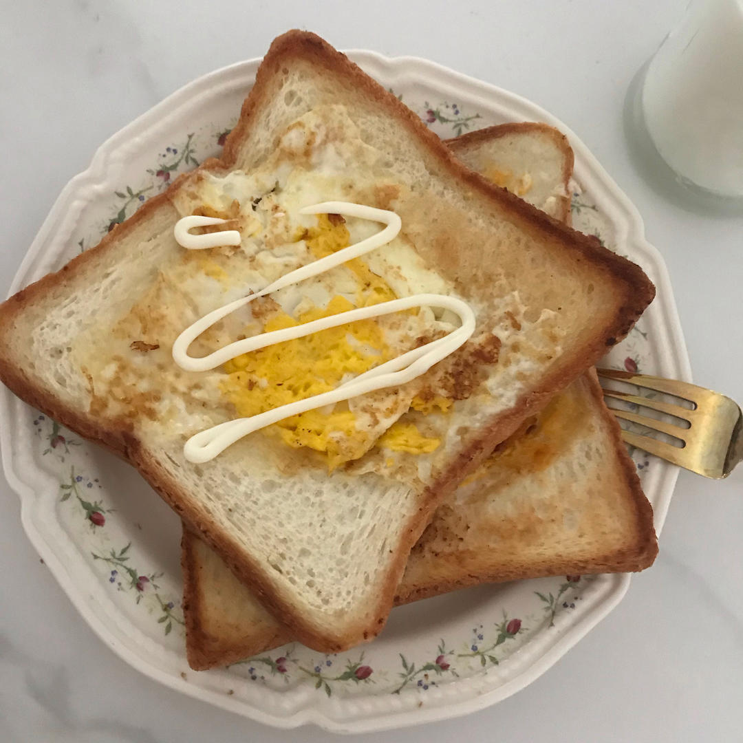 挖空一小块吐司 中间打个蛋 然后把吐司块填充回去