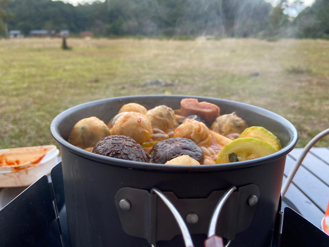 晚餐:露营🏕️部队锅,烤排骨,烤栗子,热可可