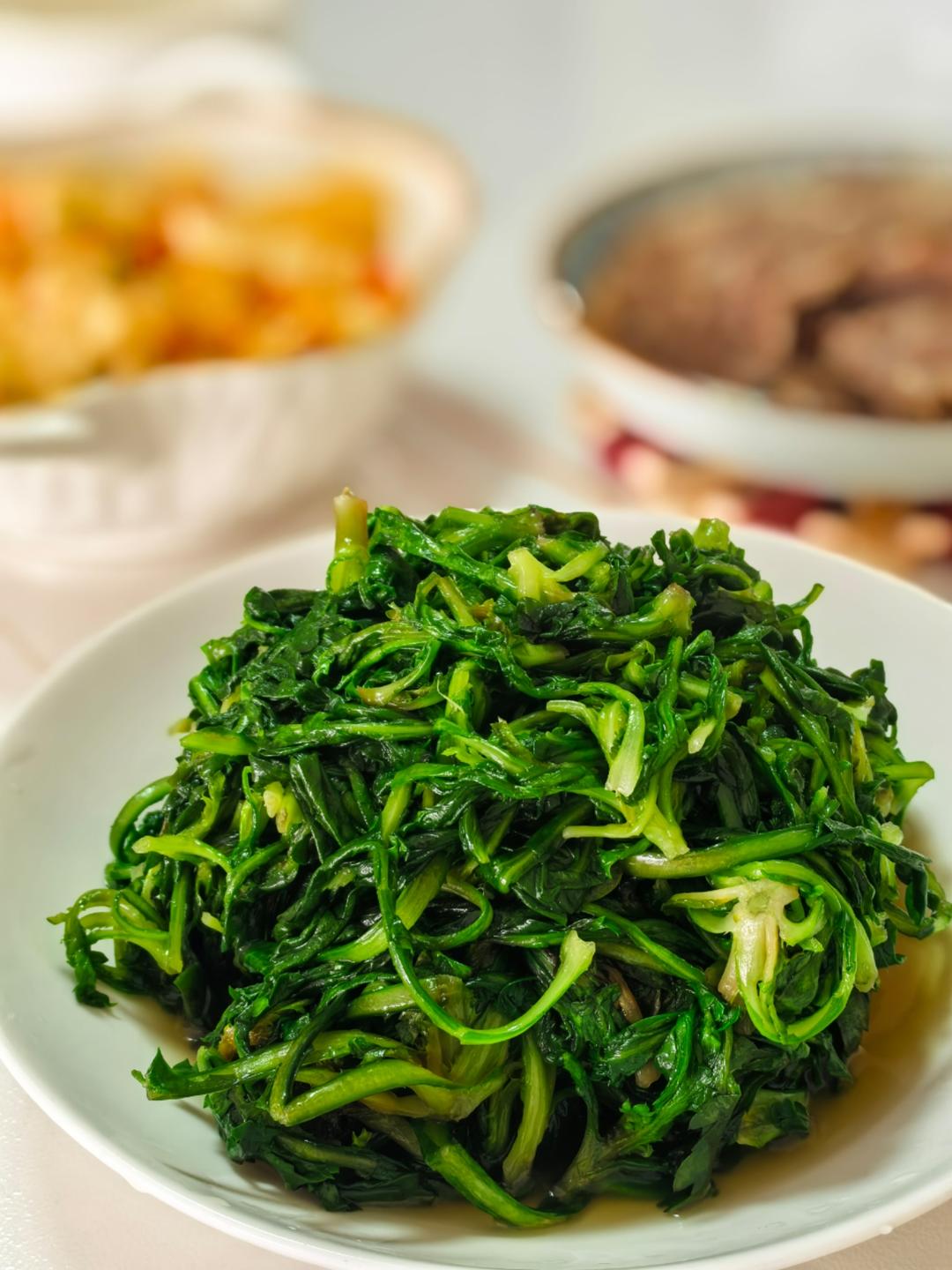 蒜子空心菜 剁椒蒸鱼鳍 公椒炒豆干