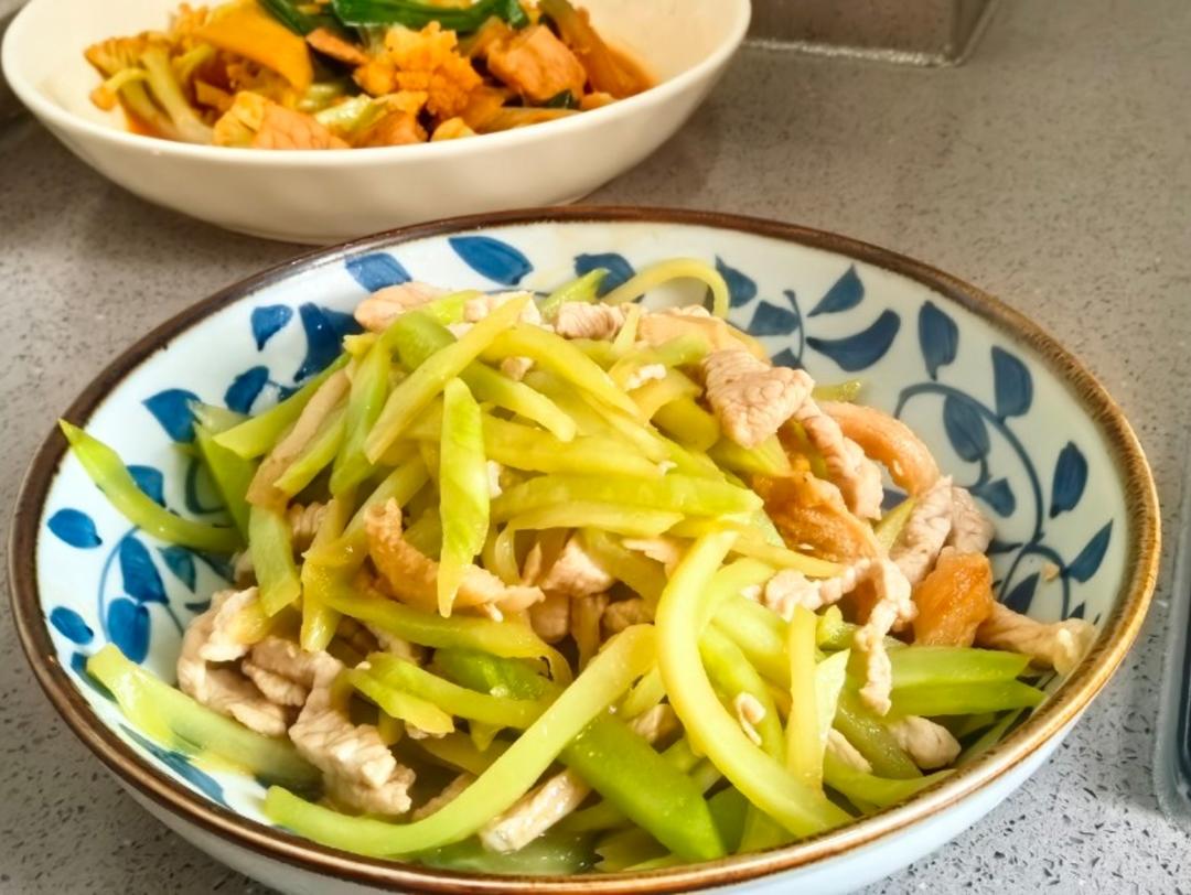 脂渣炒青菜 肉片炒莴笋 和未入镜的肉末炖蛋