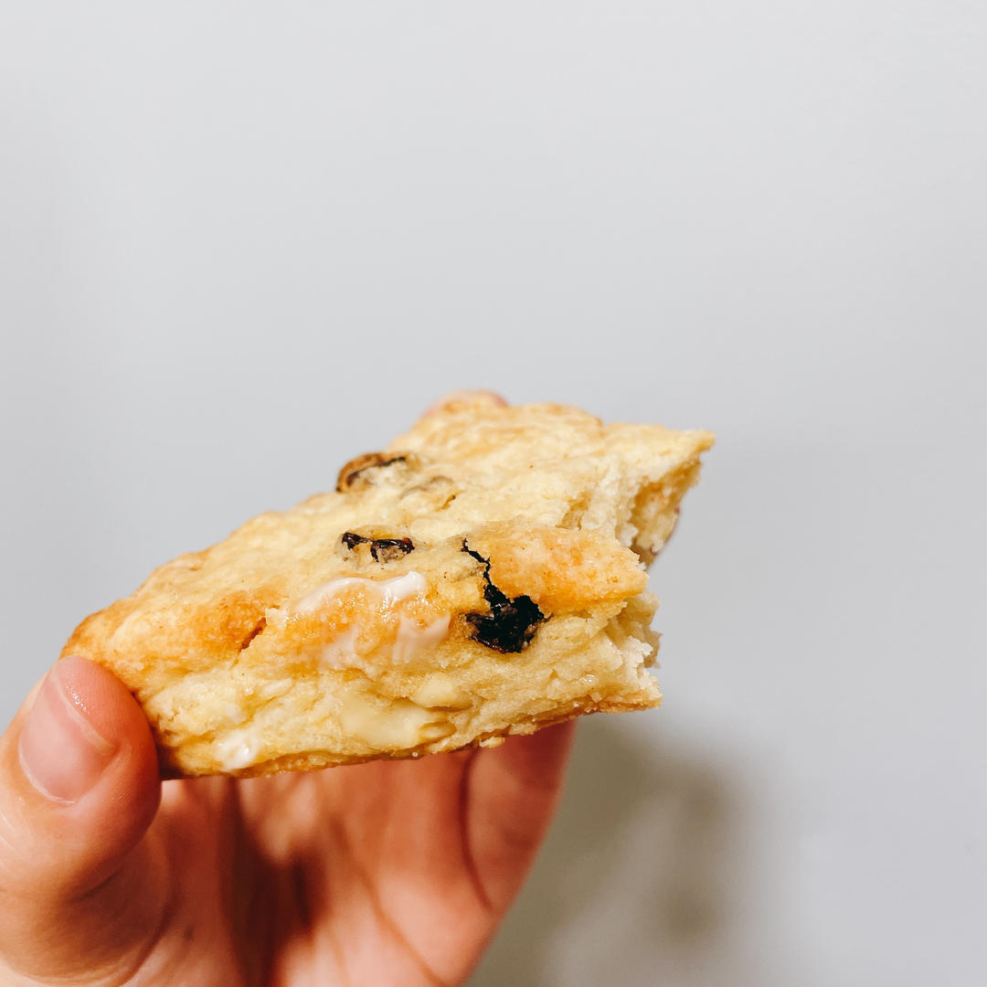 因为好久没有用淡奶油了对于成品质感稍有点不确定,所以多烤了一会感觉有点过头……但还是超好吃!加了朗姆酒浸葡萄干,风味绝美...