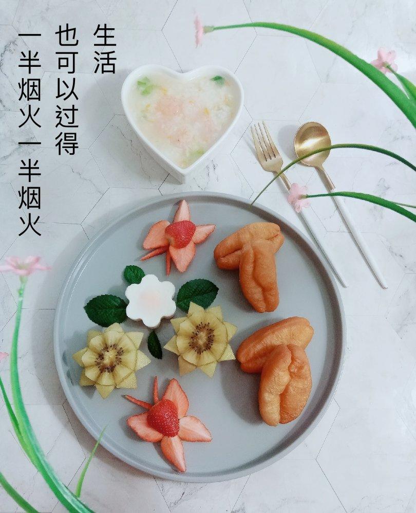 虾仁蔬菜粥+小油条