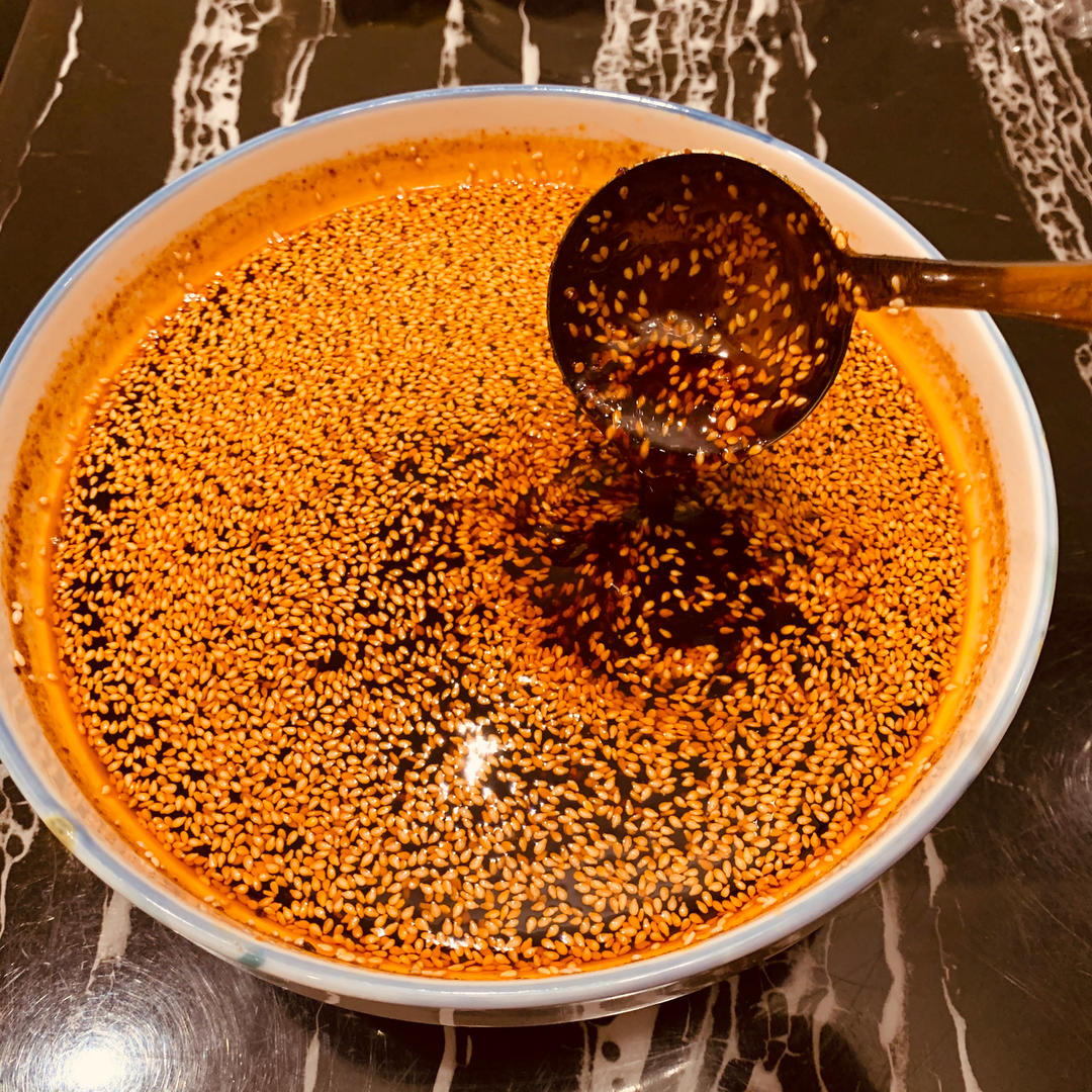 先做红油。等材料到齐再做口水鸡,这红油也太香了吧。