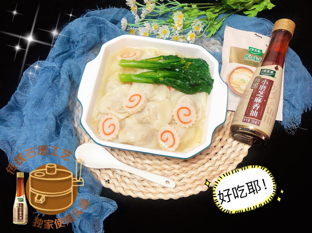 美味鲜甜的馄饨,肉馅用太太乐头道小磨芝麻香油和太太乐原味鲜鸡精调味,肉质鲜美、香醇浓郁,汤汁也很鲜甜可口!😋😋#午餐•2...