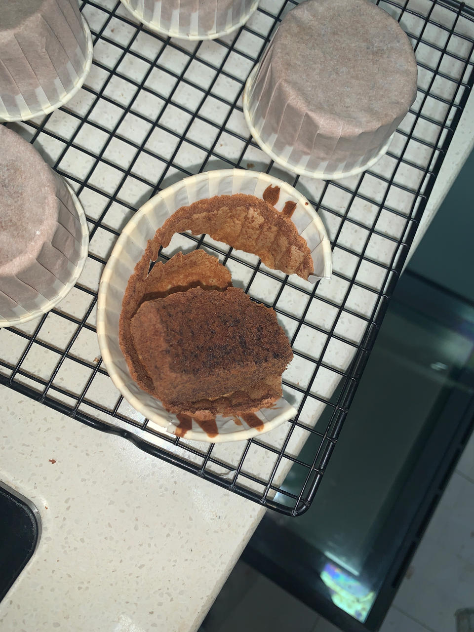 烤蛋糕史上第一次失败经历……面粉后面是否多加了个零,为了消耗倒多了的可可粉做的,看到面粉80虽然有点疑惑还是犟着做了,没...