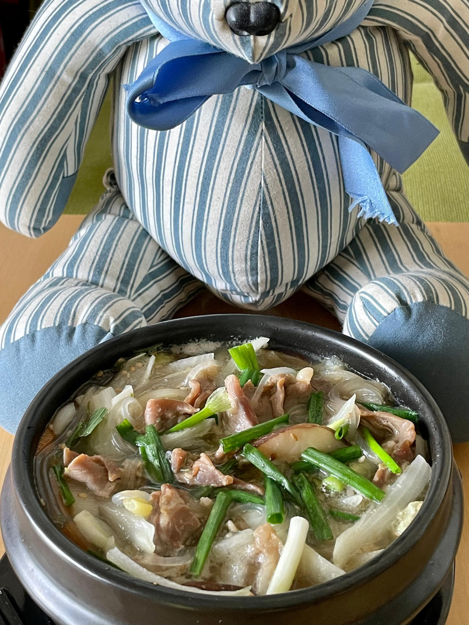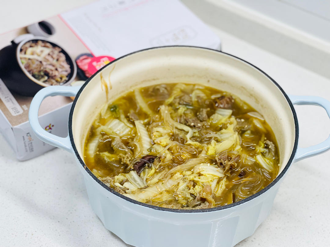 跟着指示做了人生第一份韩国牛肉粉丝汤。这不是立即可以享用...