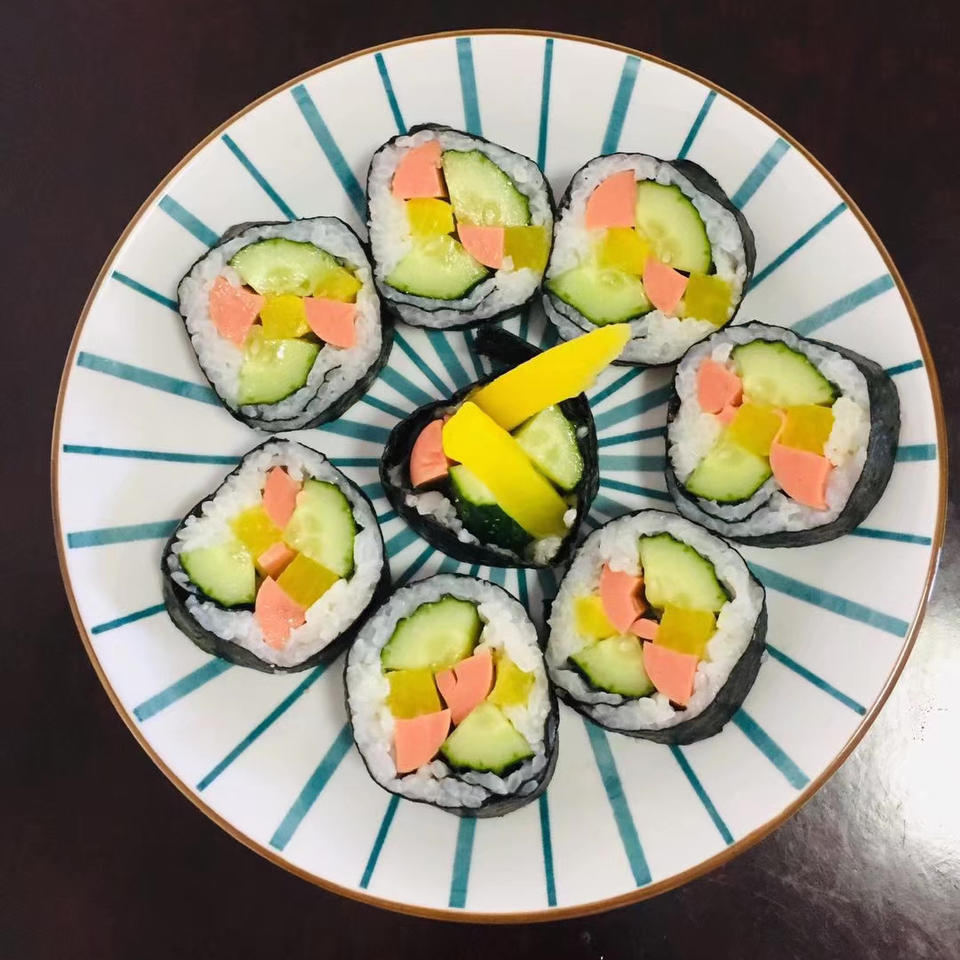 韩式紫菜卷:又做了另一种口味,放了火腿肠、黄瓜🥒、韩式黄大根