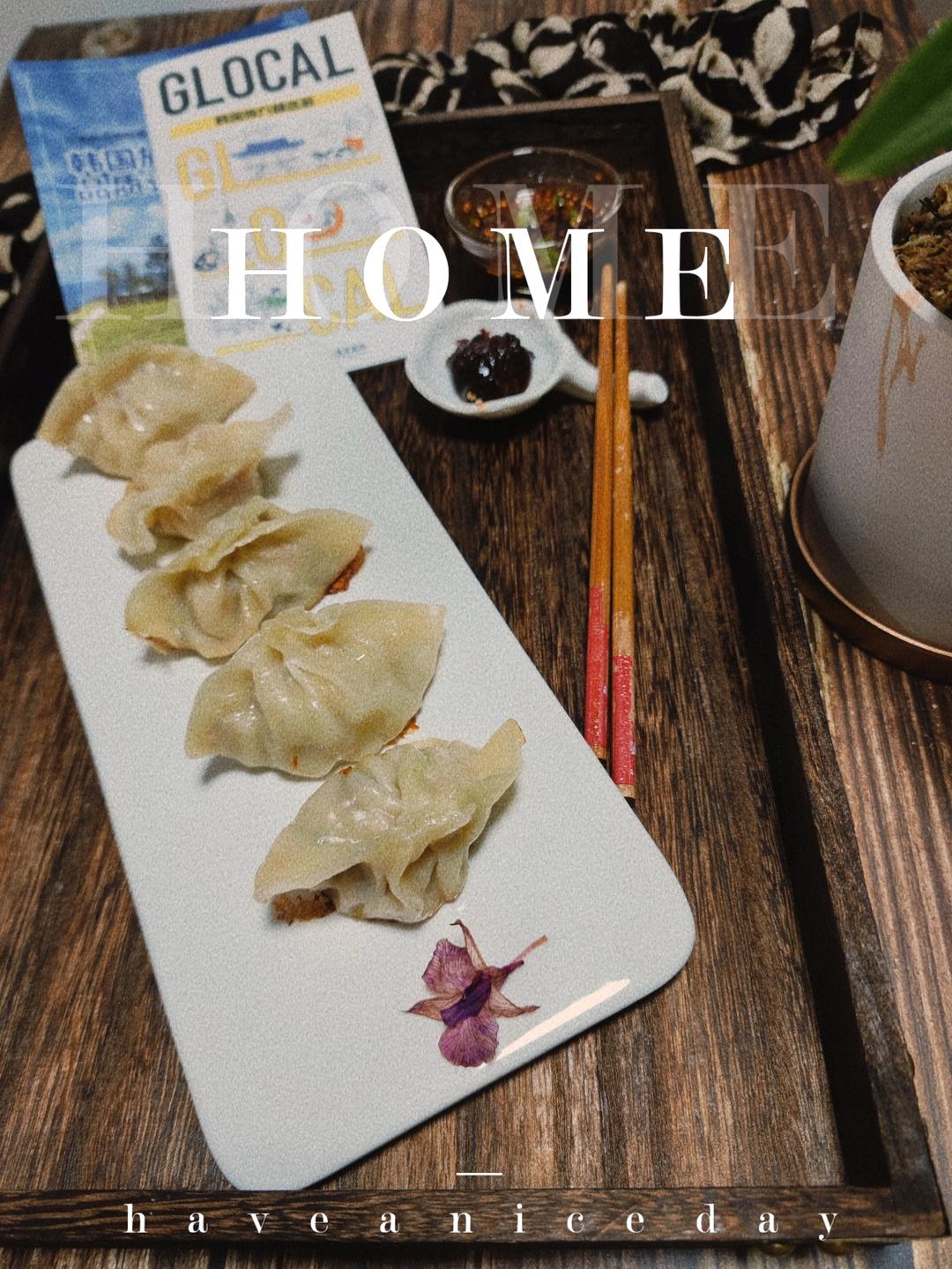 煎饺子蘸韩国辣椒酱,美味。