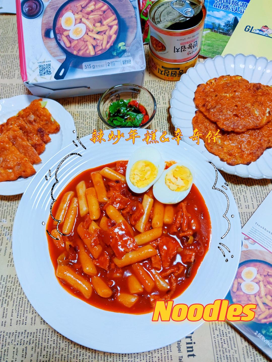 今天就来做韩式风味的辣炒年糕配辛奇饼!
