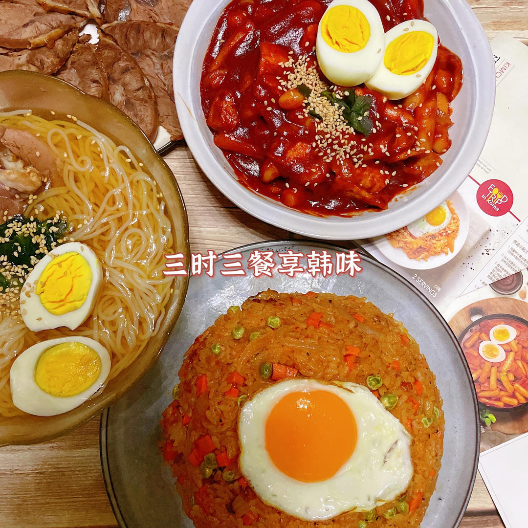 来一顿纯正的韩国料理,辣炒年糕×辛奇炒饭,再配上冰冰凉的大冷面,完美!
