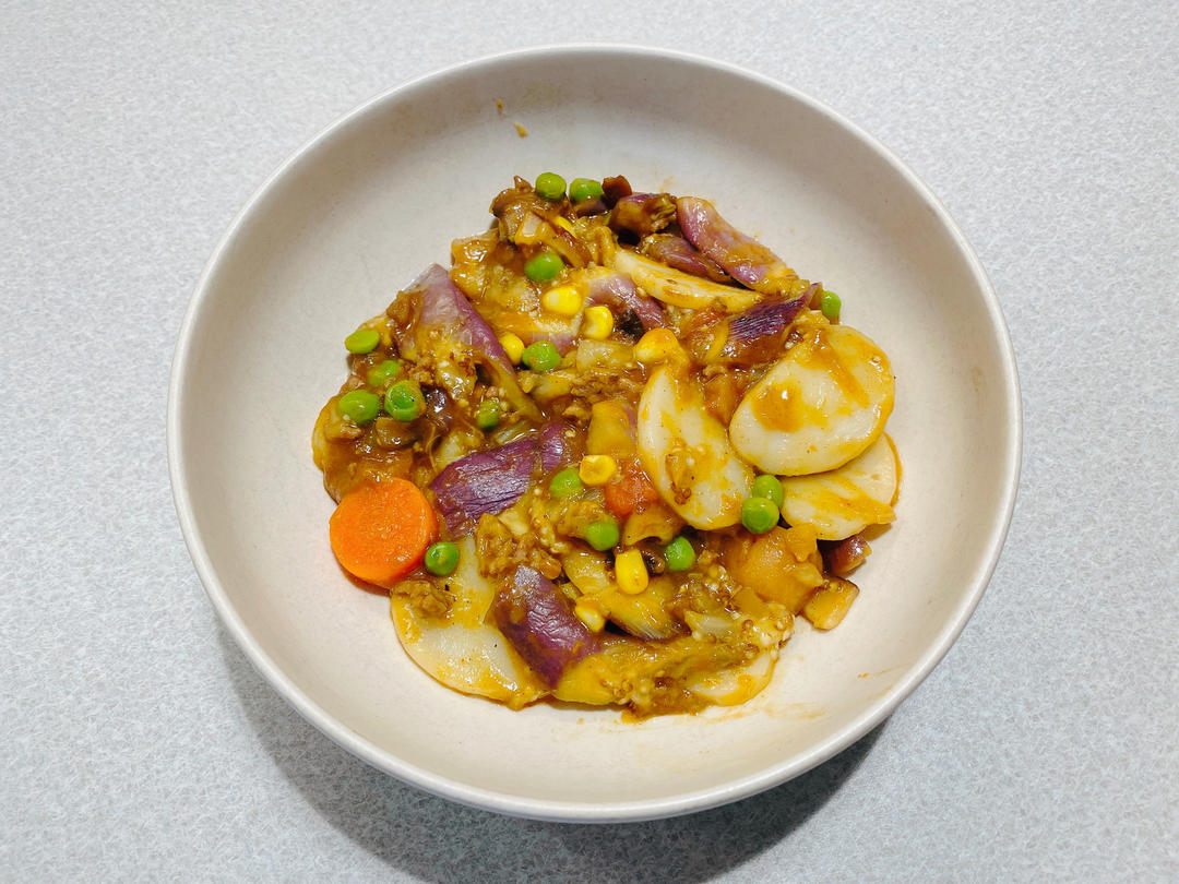 好吃的咖喱茄子炒年糕😋