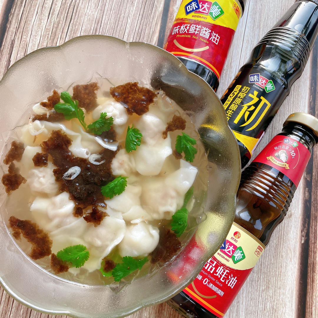 一口一个的鲜香小馄饨,用味达美的味极鲜酱油,初榨生抽以及臻品蚝油拌出来的...